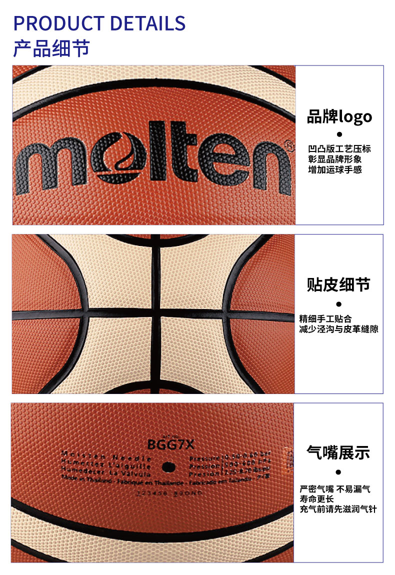 国家篮联FIBA认证篮球,采用高级PU表皮防滑,耐磨质感。魔腾独特12片贴片,加深筋沟更容易抓握,优质中胎为内部提供结构形状的保护,高密度尼龙缠纱提供了球体的稳定性,丁基内胆加发泡层使的球体气密性好,气压稳定,弹性好手感好。