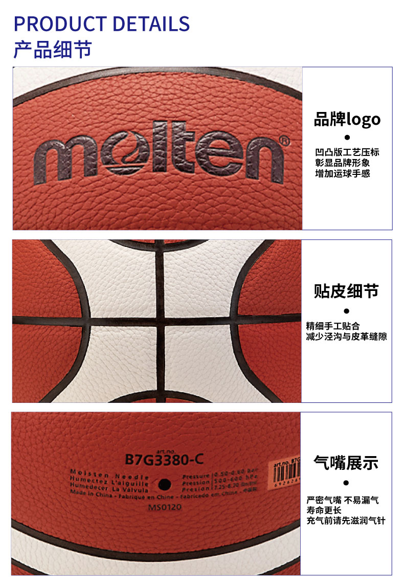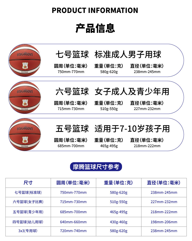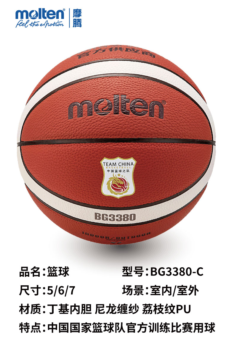 Molten摩腾篮球BG3380-C丁基内胆 PU帖皮5/6/7号球