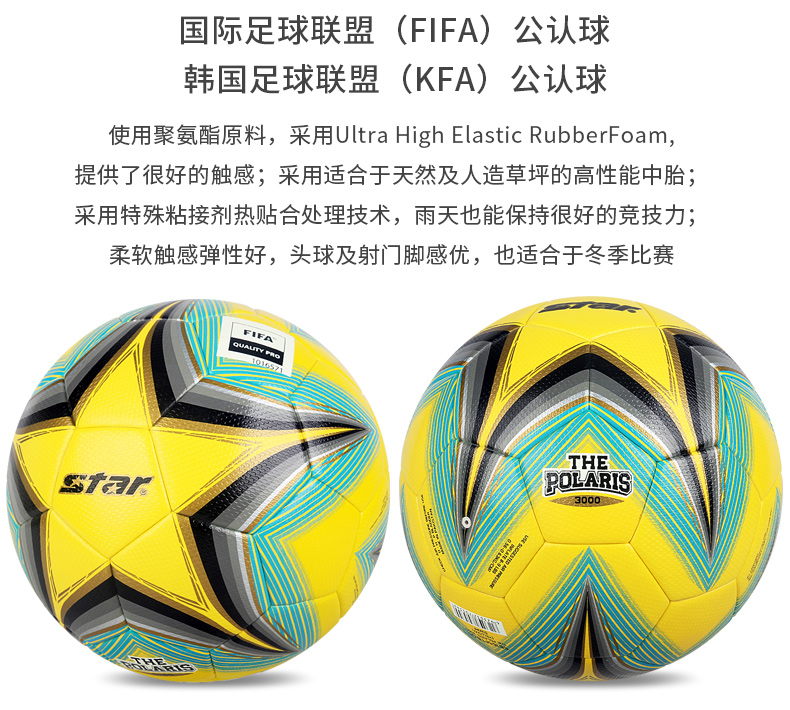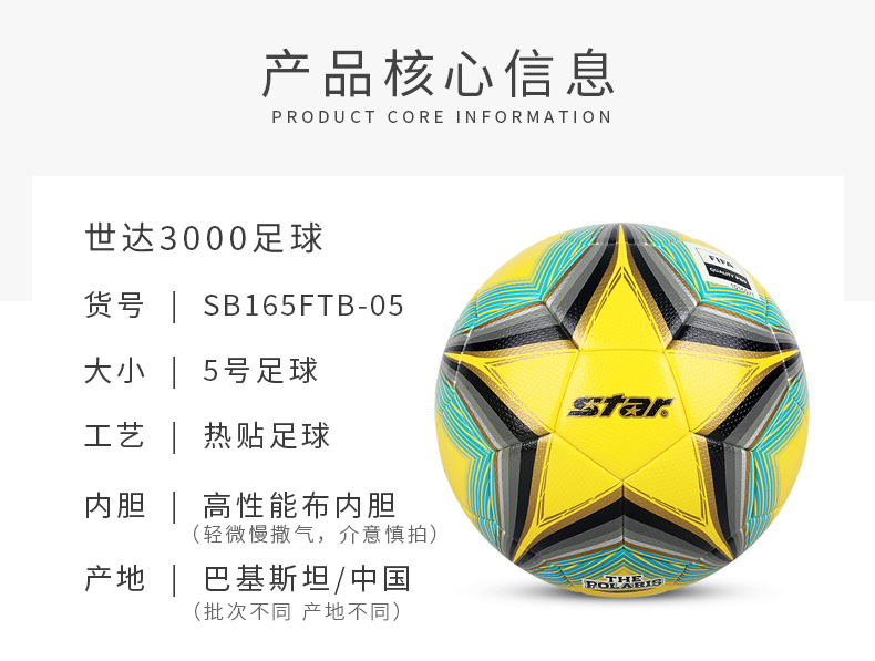 STAR世达足球新款3000世达SB165FTB-05聚氨酯高性能中胎热贴合专业比赛专用球5号(FIFA公认球)