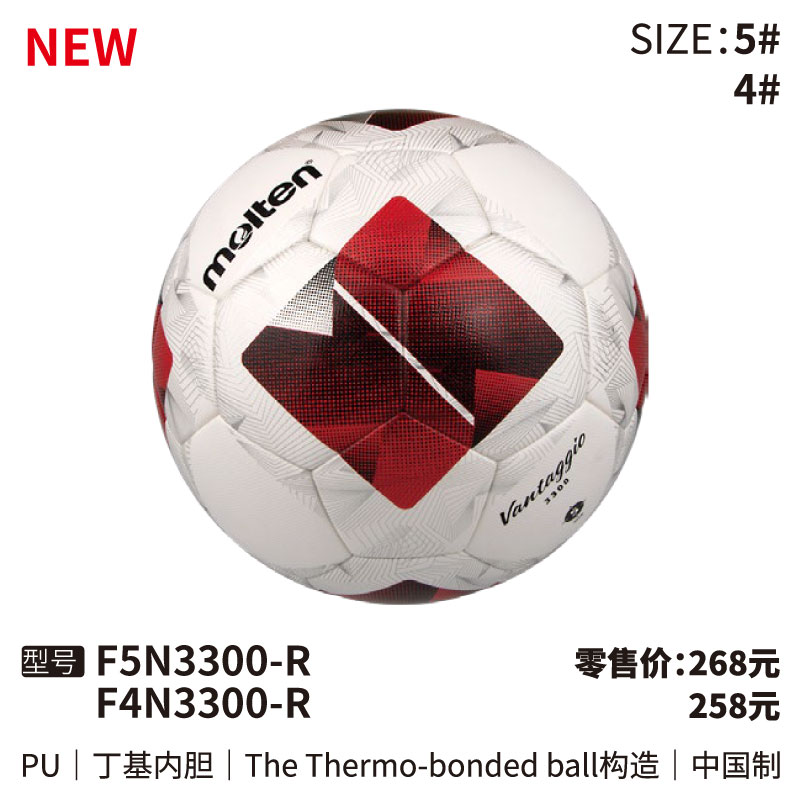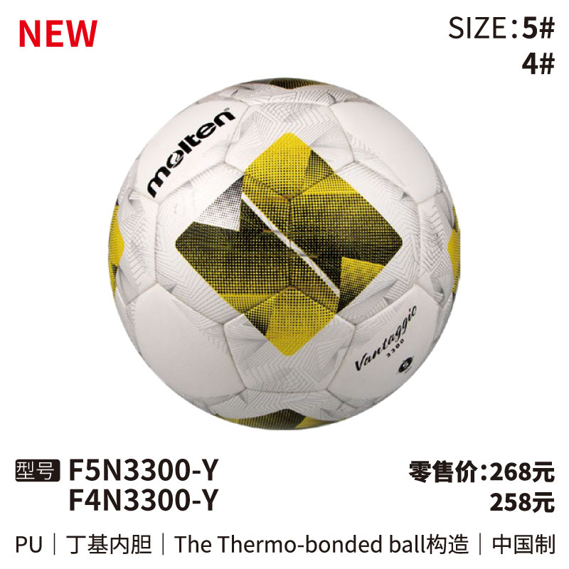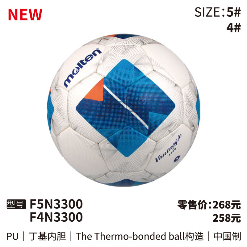 Molten摩腾足球 F5N3300 PU皮革 丁基内胆 The Thermo-bonded ball构造