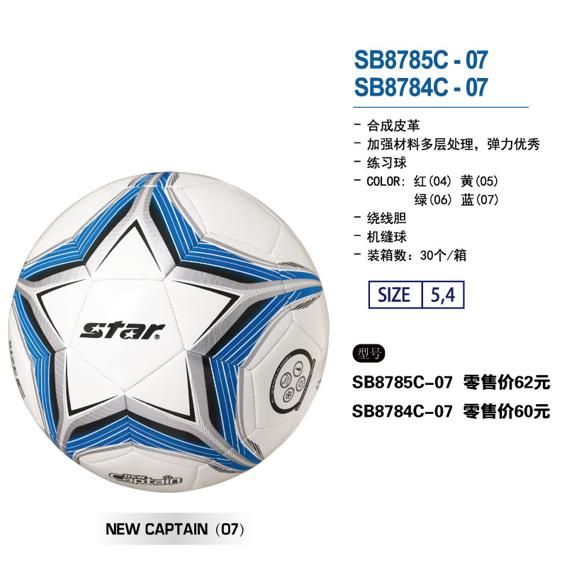 STAR世达足球SB8785C-04/05/06/07合成皮革绕线胆机缝练习球4/5号球