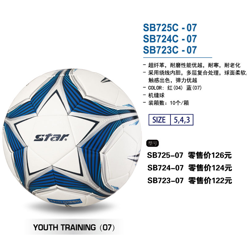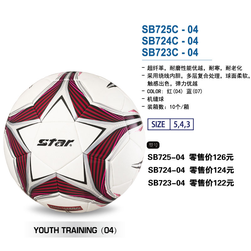 STAR世达足球SB725C-04/07超纤革绕线胆机缝球3/4/5号