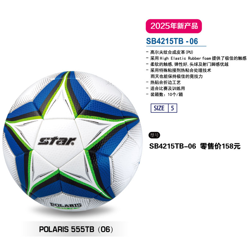 STAR世达足球SB4215TB-04/06高尔夫纹合成皮革PU热贴合折边工艺适合比赛及训练用5号球