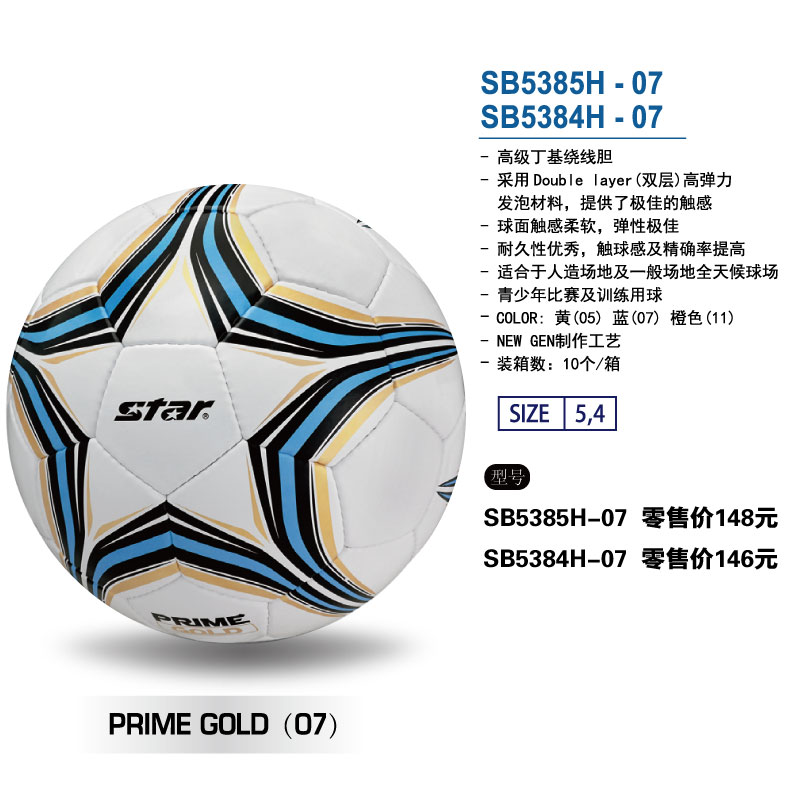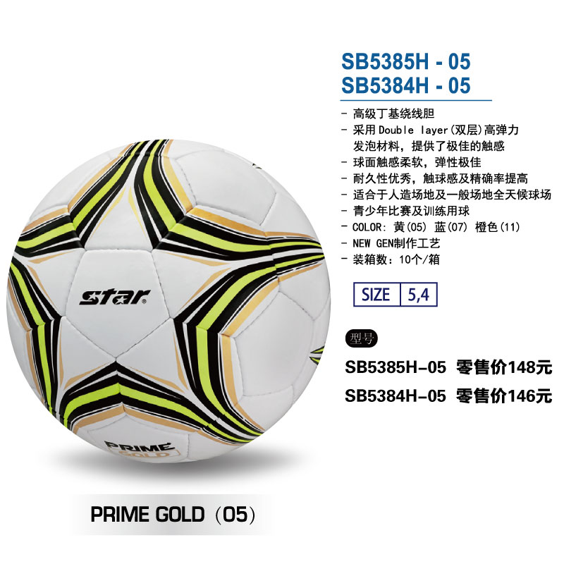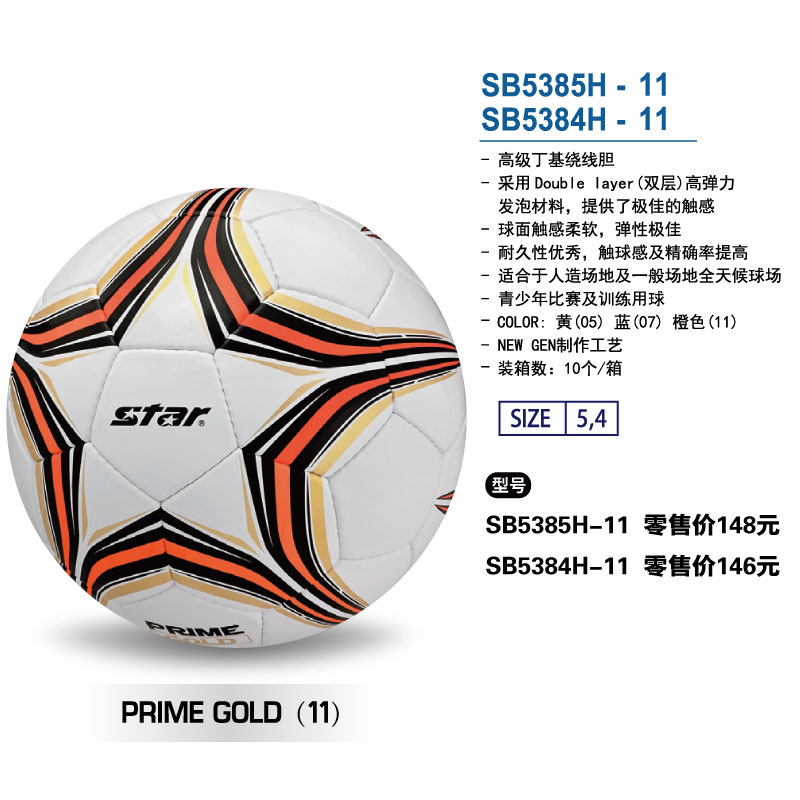 STAR世达足球SB5385H-05/07/11高级丁基绕线胆NEW GEN工艺青少年比赛及训练用球4/5号