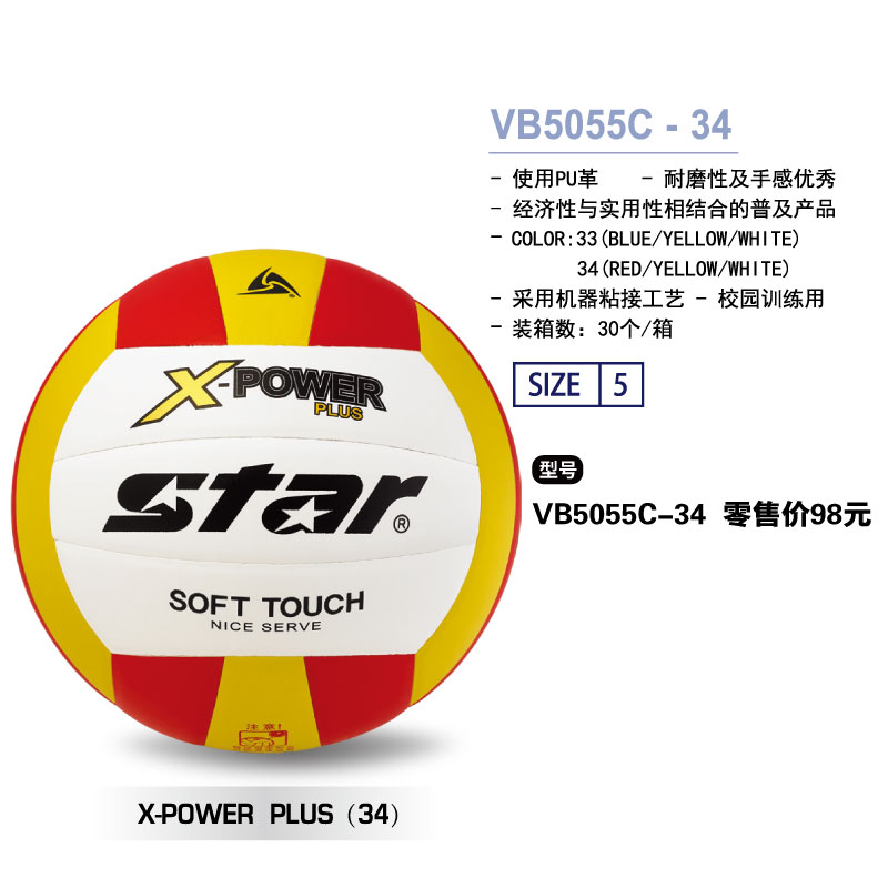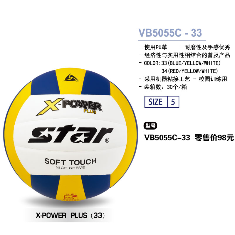 STAR世达排球VB5055C-33/34 PU革机器粘接工艺校园训练用5号球适用于中学生体考训练和比赛